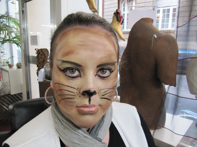 paint job was equal to five points in the face and therefore always to paint a circle in a different color. Layer until the whole face is full. In addition, the neck and décolleté be completely painted. Everyone was allowed to choose two colors s and a headdress kreiren of all the hair and ears covered.