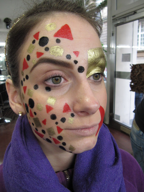 And here is a kind of fantasy Karnevalsschminkerei. We use only the smell colors black, red and gold . I made it: